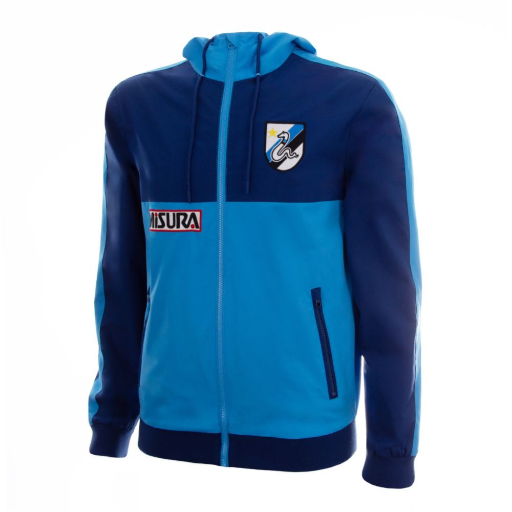 La veste dispose d’une capuche et de deux poches zippées. Elle fait partie de la collection officielle FC Internazionale de COPA Football et offre un style rétro affirmé.